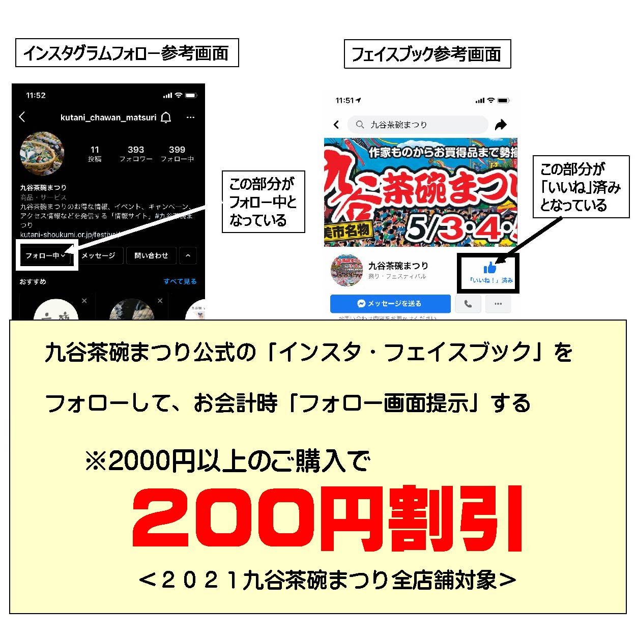 【インスタグラム フェイスブックのフォロー画面提示で200円割引します。】