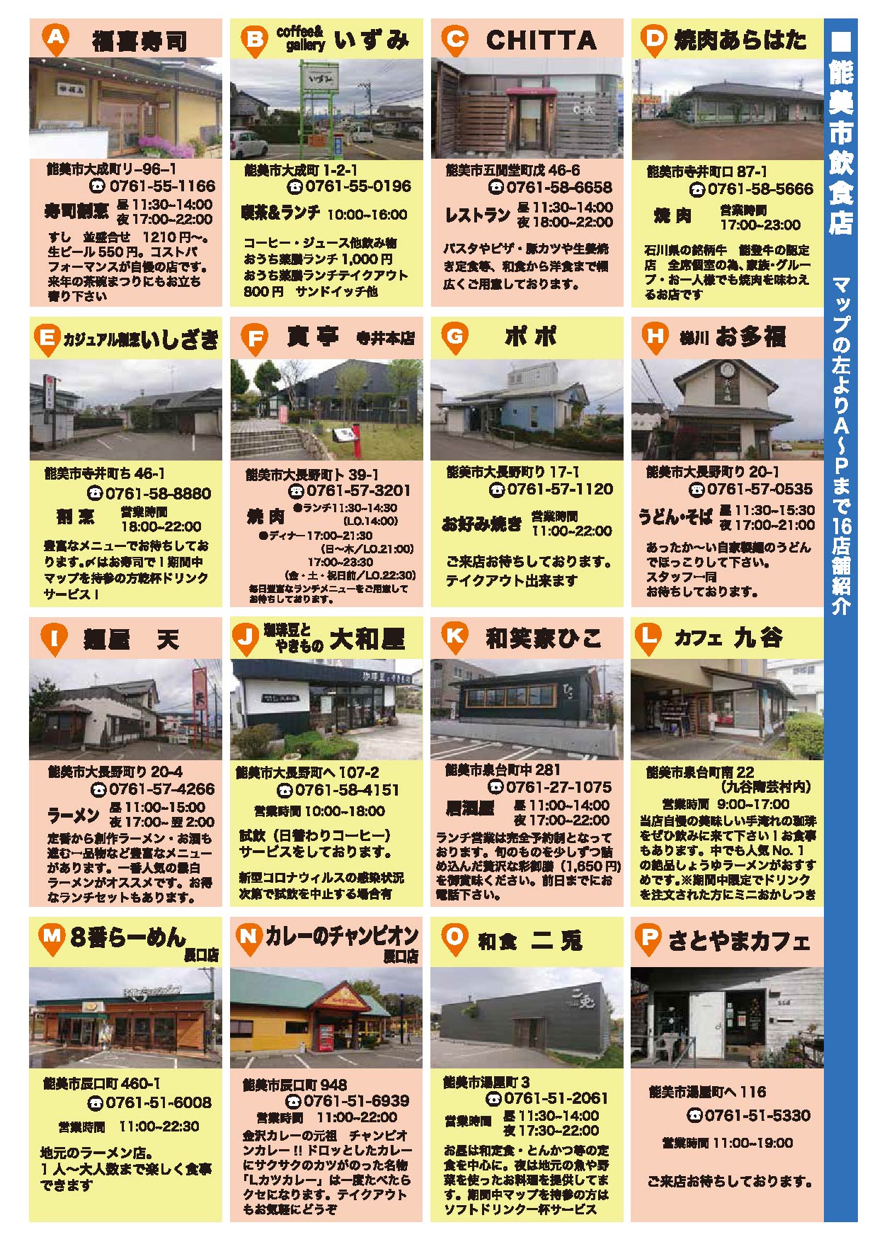 会場マップに能美市内の飲食店を20店舗ほど紹介の予定。